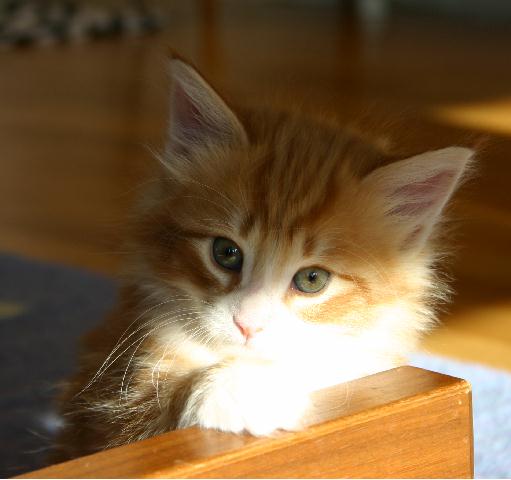 Född: 2006-02-01 Ems kod: NFO d 09 22, Rödtabby-vit Far: GIC S* Milda ma Tildes Nisse Rimfrost Syskon: Klas Kattfot, Milla Mandelblom Status: Fertil hona Tester: HCM-testad normal 2007-08-29
