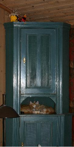 Systrarnas favoritsovplats under helgen...i farmors hörnskåp!