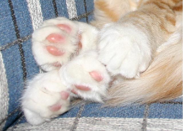 Fyra mysiga tassar - alla tillhörande samma katt...Kan ni gissa vem?